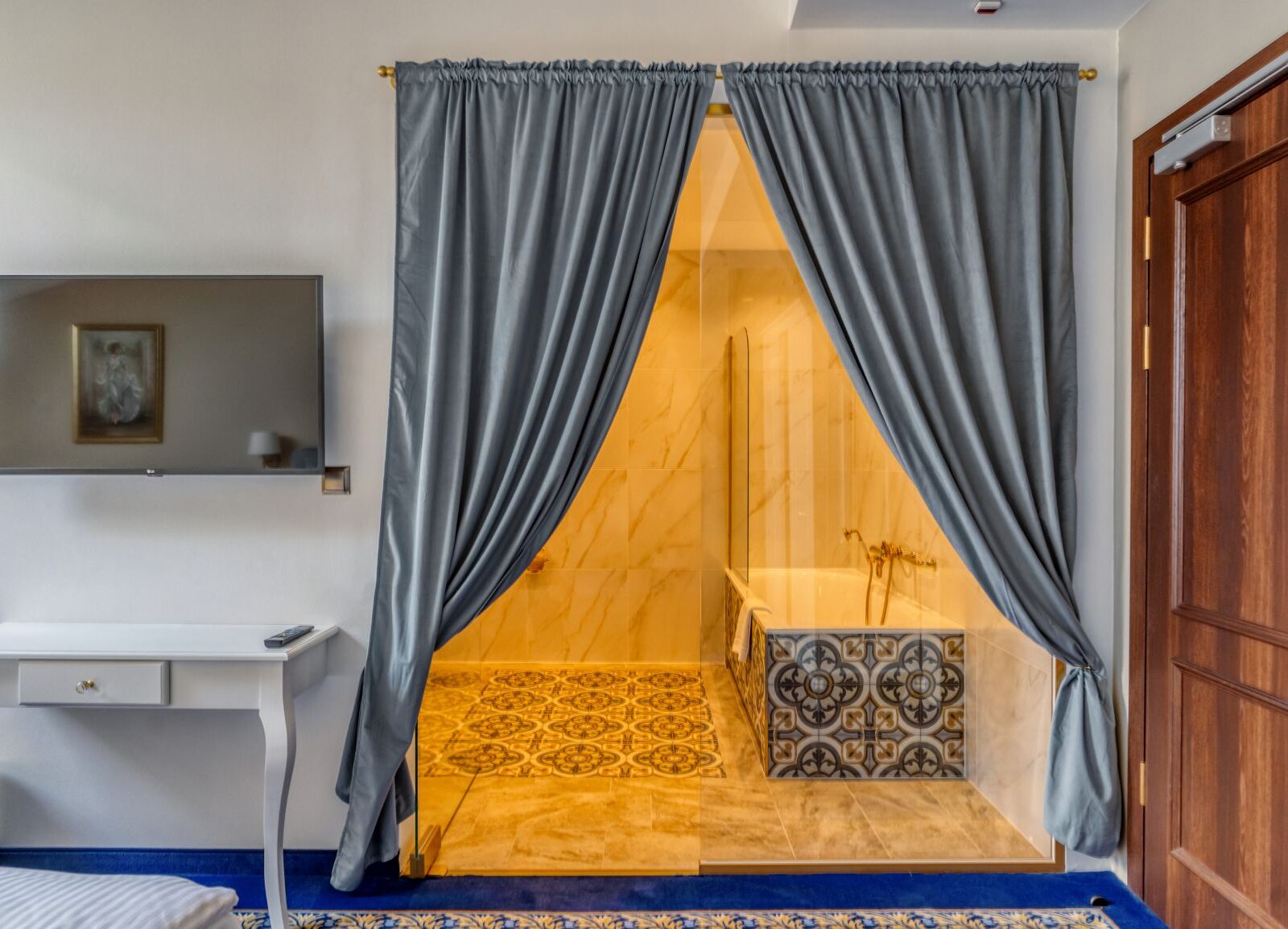 Luksusowy Apartament Deluxe z jacuzzi to przestrzeń stworzona z myślą o wyjątkowych chwilach relaksu i komfortu na najwyższym poziomie. Eleganckie wnętrze, starannie dobrane detale oraz prywatne jacuzzi w pokoju tworzą niepowtarzalną atmosferę, idealną zarówno na romantyczny wyjazd, jak i ekskluzywny pobyt dla dwojga.